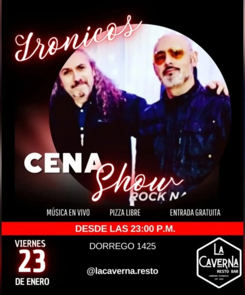 – En La Caverna Resto Bar, desde las 23:00, hay “Cena Show de Rock Nacional” con Irónicos.