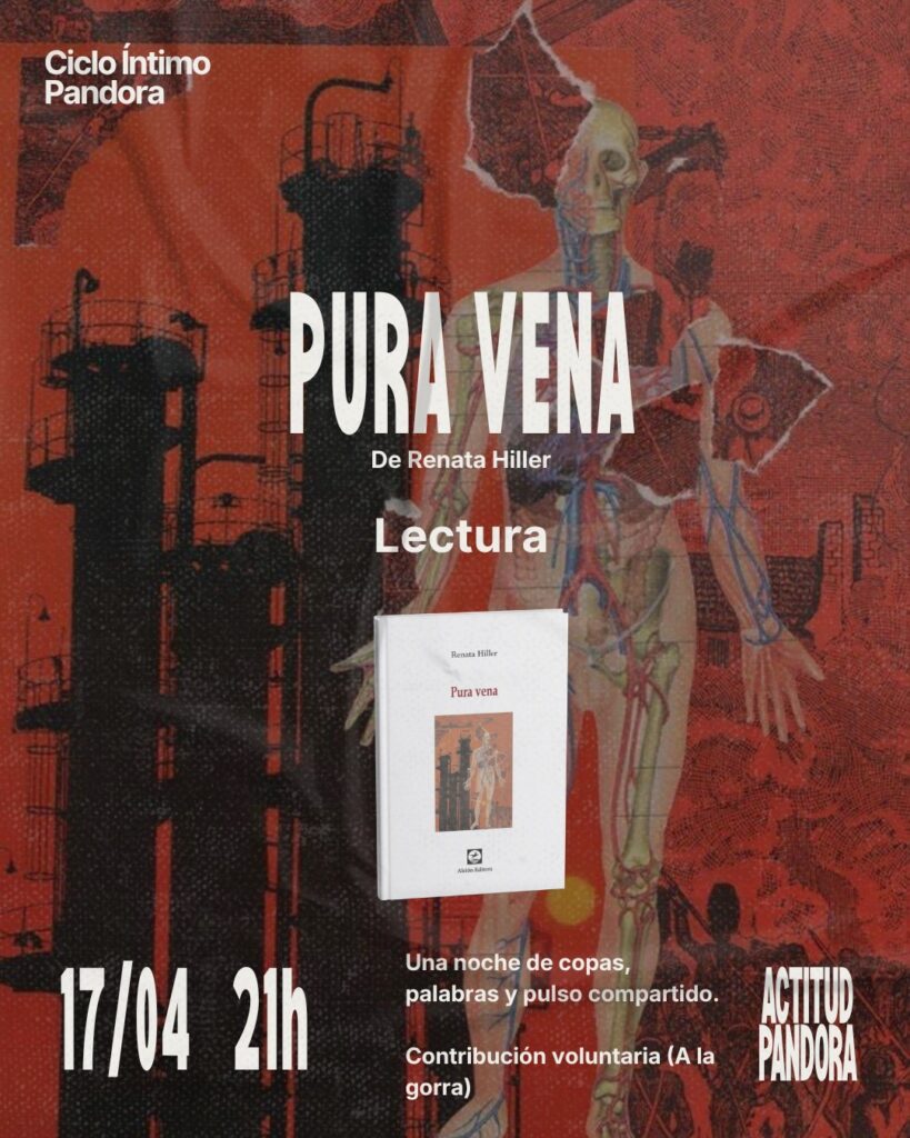 – En Actitud Pandora, a partir de las 21:00, se realiza la presentación del libro “Pura vena”, de Renata Hiller. La entrada es a la gorra.