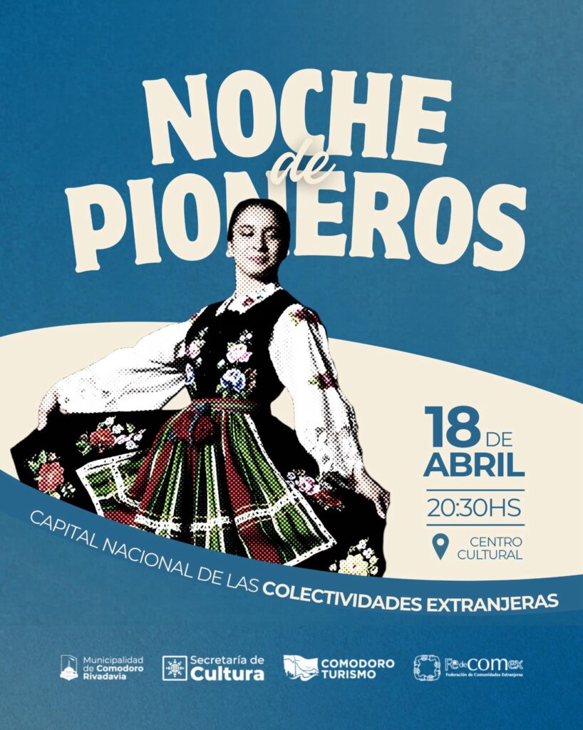 – En el Centro Cultural, de 19:00 a 00:00, se realiza una nueva edición de “Noche de Pioneros”, un ciclo especial dedicado a las colectividades, sus raíces y su identidad cultural, una propuesta que celebra la diversidad a través de la música, la danza y la gastronomía, generando un espacio de encuentro y puesta en valor de las tradiciones.