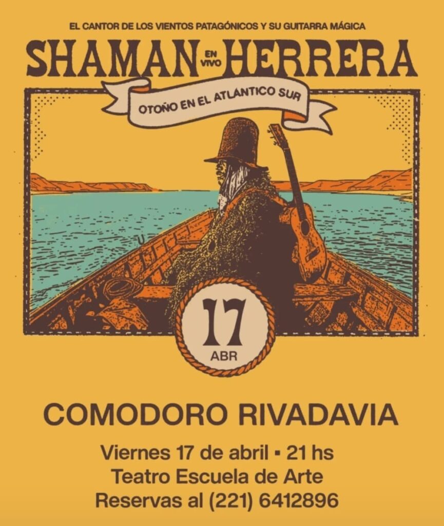 – En el teatro de la Escuela de Arte, a partir de las 21:00, se presenta Shaman Herrera, el cantor de los vientos patagónicos y su guitarra mágica, en medio de su gira “Otoño en el Atlántico Sur”. Reservas al 221-6412896. El sábado toca en Puerto Madryn.