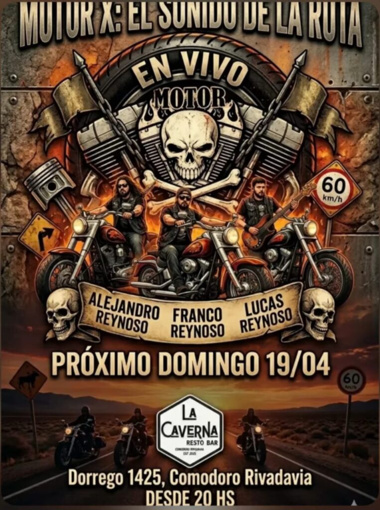 – En La Caverna Resto Bar, desde las 20:00, se presenta Motor X con todo su rock pesado.