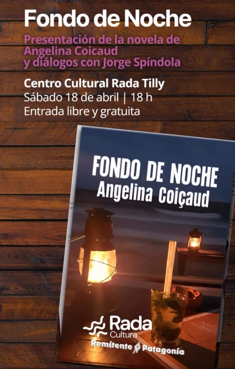 – En el Centro Cultural Rada Tilly, desde las 18:00, se realiza la presentación del libro “Fondo de noche”, de Angelina Coicaud, junto a diálogos con Jorge Spíndola.
