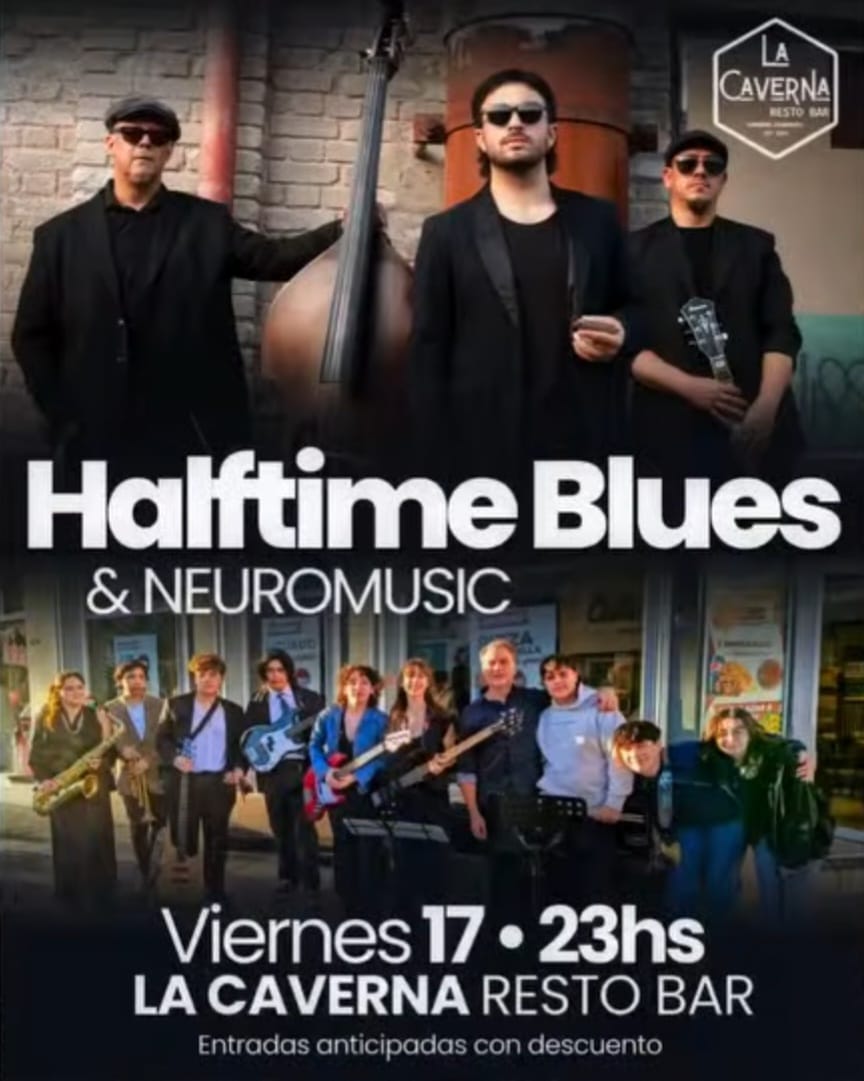 – En La Caverna Resto Bar, desde las 23:00, se presenta Halftime Blues con todo el blues tradicional de los años ‘50 y ‘60, junto a Neuromusic como banda invitada.