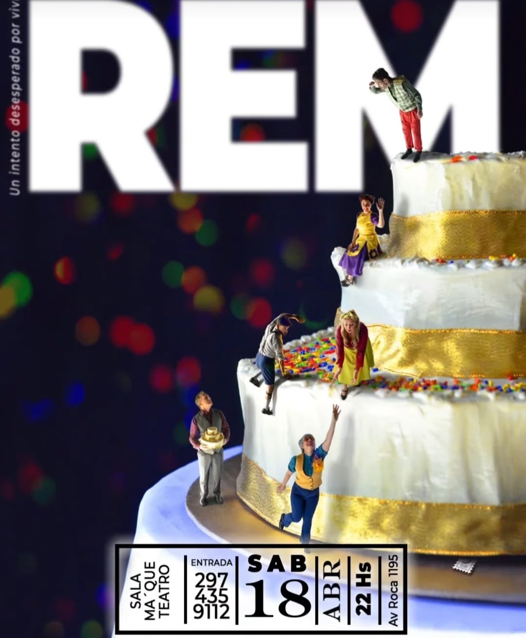 – En la sala Ma’ Que Teatro, a partir de las 22:00, se presenta la obra REM, donde se pone en escena el intento desesperado por hacer que la fiesta dure un poco más. Reservas al 297-4359112.