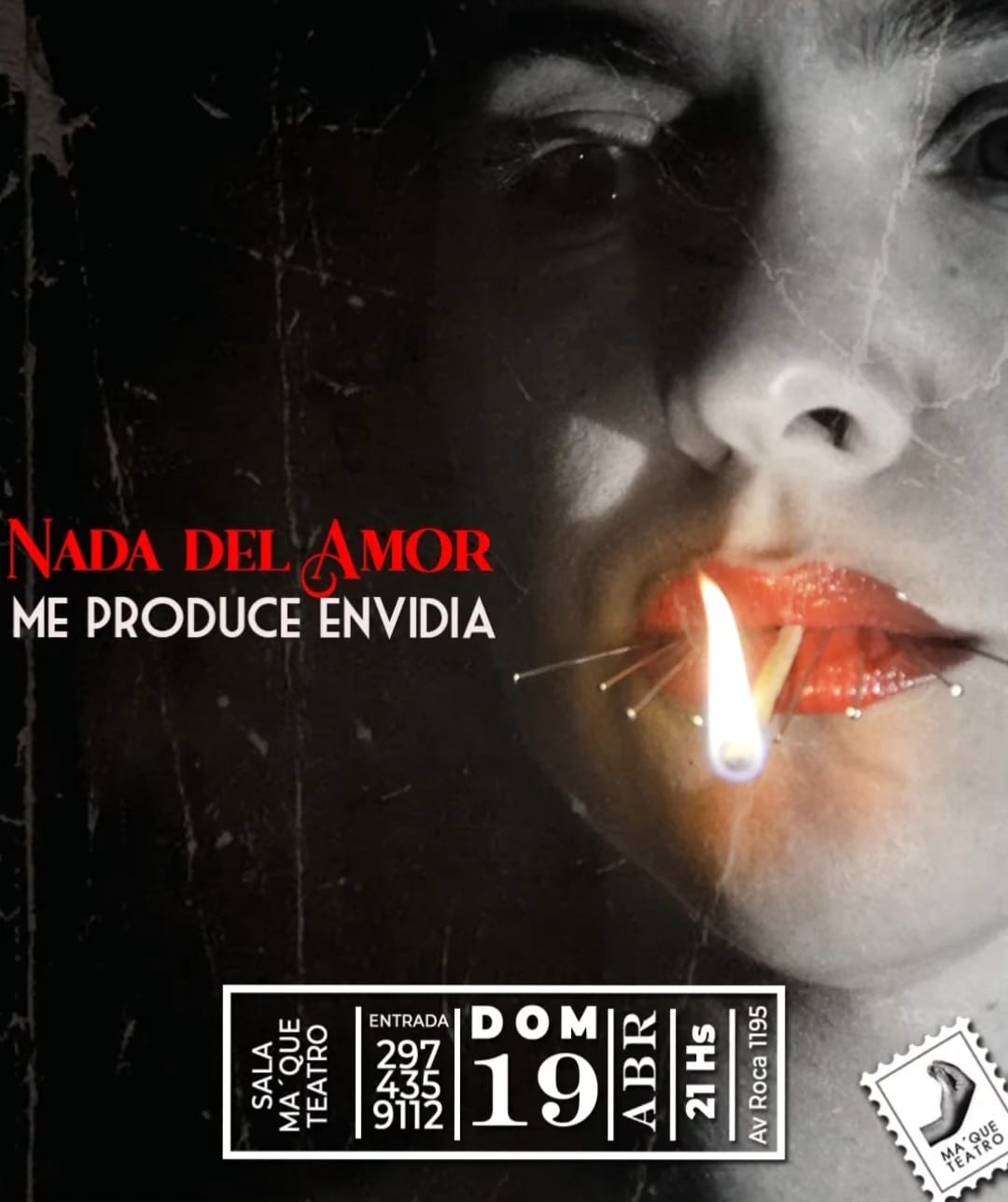 – En la sala Ma’ Que Teatro, desde las 21:00, se presenta el unipersonal “Nada del amor me produce envidia”, con Natalia Bohé Aizpeolea. Reservas al 297-4359112.