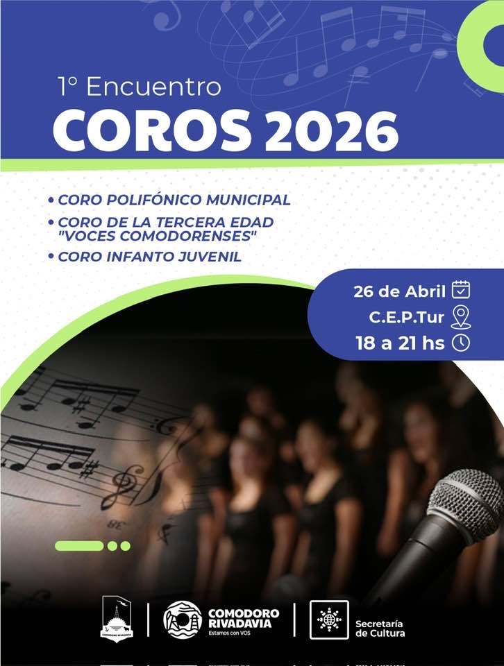 – En el CEPTur, desde las 18:00, se realiza el Encuentro Coral 2026. Participan los coros municipales con repertorio popular, académico y patagónico. Entrada libre y gratuita.