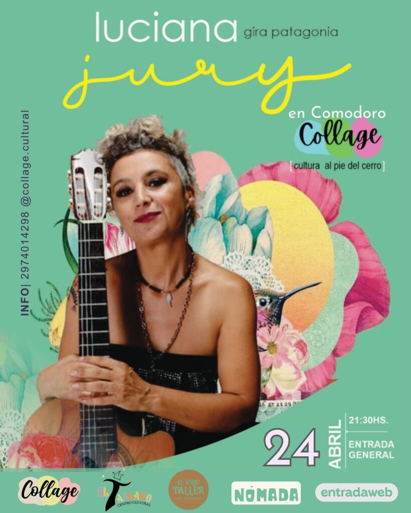 – En Collage, a partir de las 21:30, se presenta Luciana Jury con su voz, una guitarra y un racimo de canciones propias y ajenas para contar su mirada del mundo.