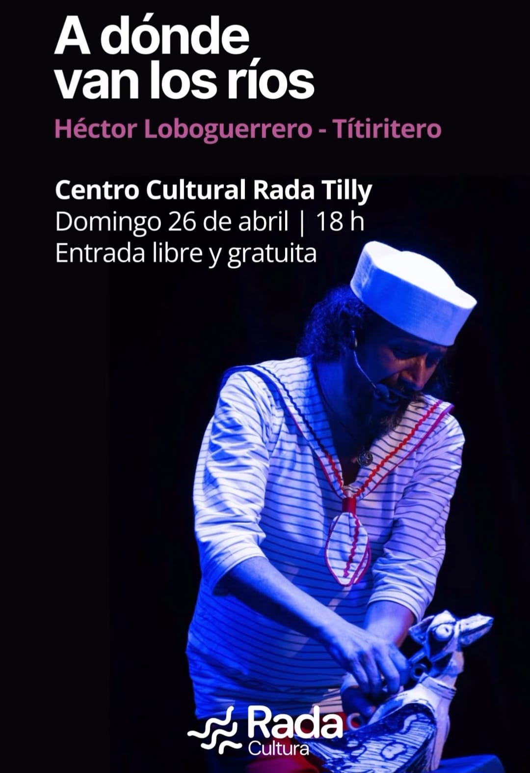 – En Collage y en el Centro Cultural Rada Tilly, se realiza el espectáculo de títeres “A dónde van los ríos”, a cargo del titiritero Héctor Loboguerrero, de la compañía colombiana La Pepa del Mamoncillo. Este espectáculo combina narración oral y títeres para construir una historia tan poética como aventurera: un marinero y tres pequeños pájaros carpinteros que se animan a emprender un viaje inesperado. Con recursos simples pero llenos de creatividad -como un nido de paja que se transforma en barco-, la obra propone un recorrido sensible que despierta la imaginación y deja resonando preguntas sobre la valentía, la curiosidad y la identidad. Con una duración de 45 minutos, es una invitación ideal para grandes y chicos.