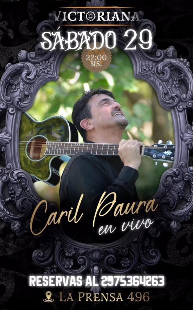 – En Victoriana Pub, desde las 22:00, se presenta el cantante y guitarrista Caril Paura. Las reservas se hacen al 297-5364263.