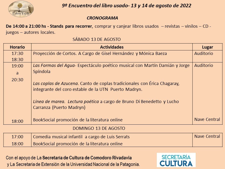 Con el apoyo de la Secretaría de Cultura de la Municipalidad de Comodoro Rivadavia y de la Extensión Universitaria, el encuentro estará respaldado por diferentes espectáculos y muestras.