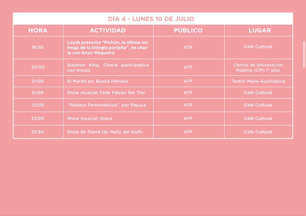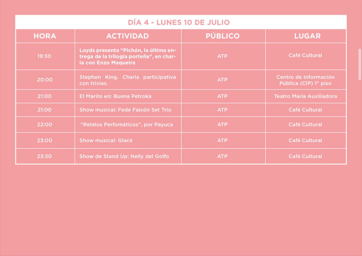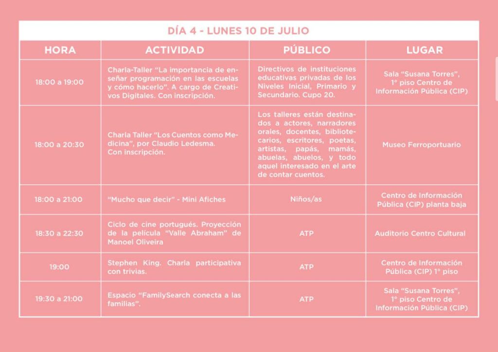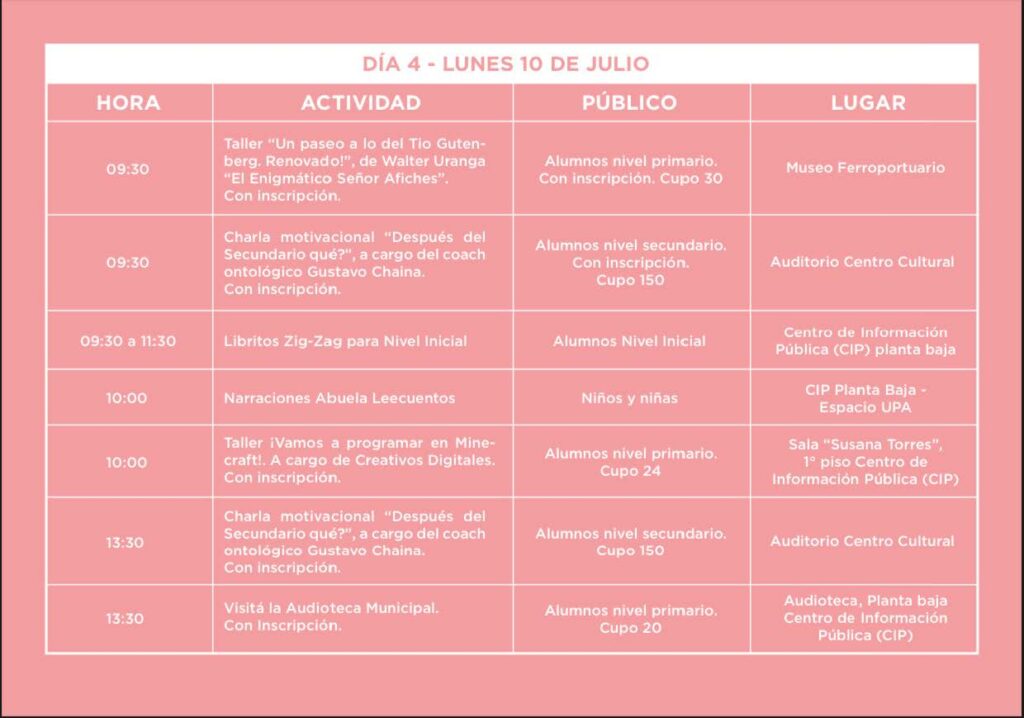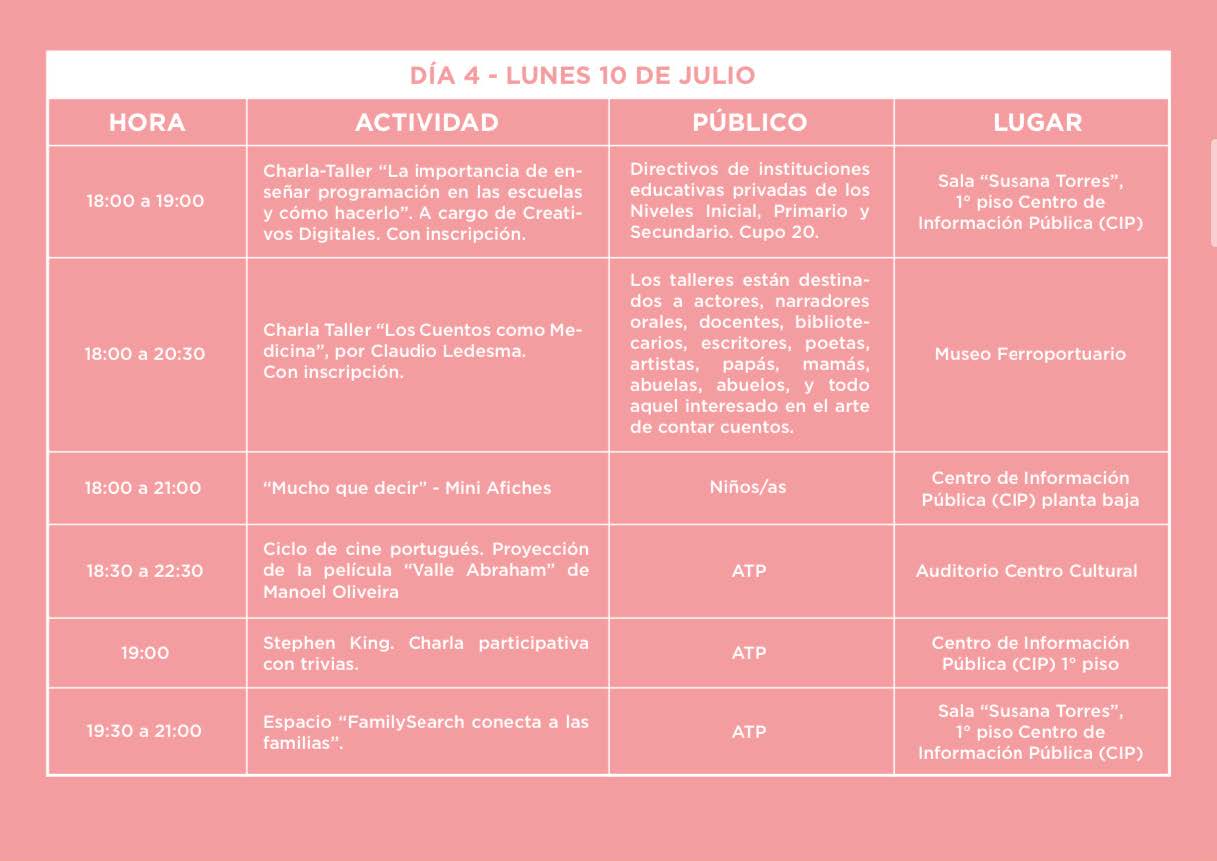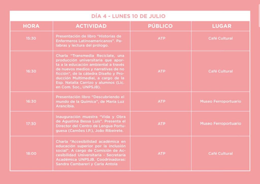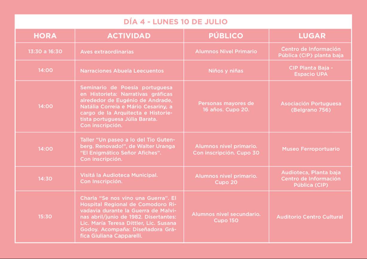 Agenda 289 Visto 10 julio, 2023 Feria del Libro: día 4 Desde las 9:30 se vive la cuarta jornada del evento internacional en Comodoro Rivadavia, que está realizando su 10ª edición en nueve edificios diferentes y con más de 300 actividades. Compartir: ¿Te gustó el post?