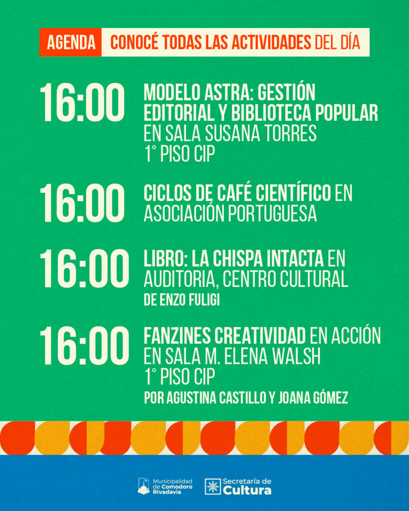 El escritor presenta su libro “Demasiado lejos” en el Auditorio del Centro Cultural, a las 19:00, mientras que desde las 23:00, el cantante de Los Caballeros de la Quema cierra la primera jornada en el Domo instalado especialmente para esta 12ª edición. Hay más de 30 actividades a lo largo de todo el viernes 1 de agosto. Acá te compartimos la programación.