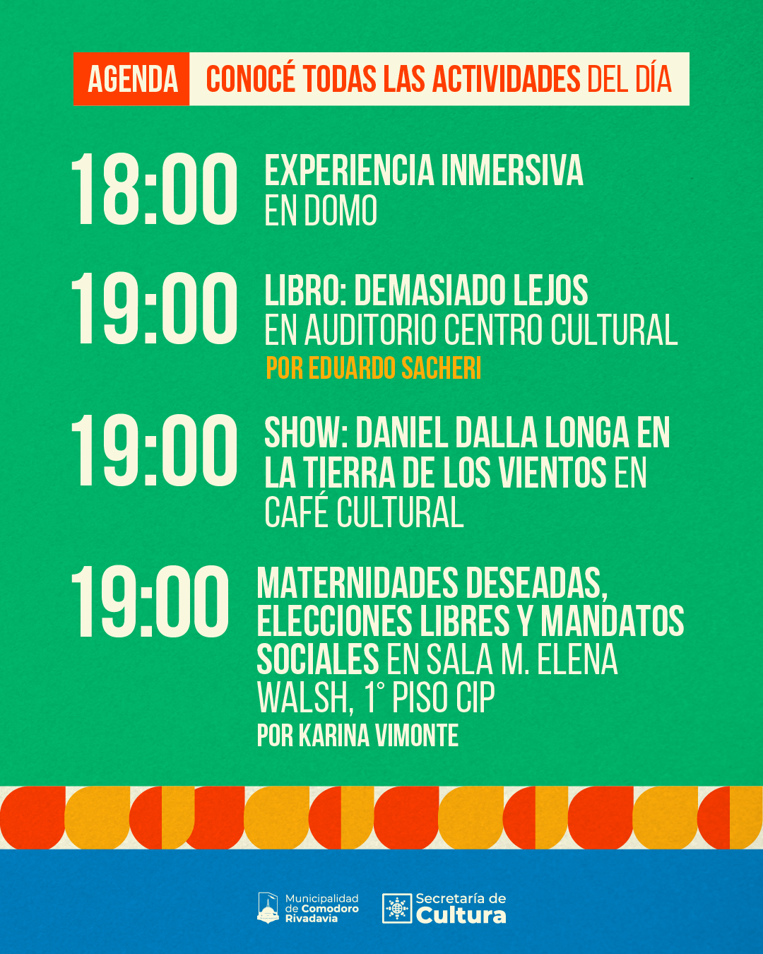 El escritor presenta su libro “Demasiado lejos” en el Auditorio del Centro Cultural, a las 19:00, mientras que desde las 23:00, el cantante de Los Caballeros de la Quema cierra la primera jornada en el Domo instalado especialmente para esta 12ª edición. Hay más de 30 actividades a lo largo de todo el viernes 1 de agosto. Acá te compartimos la programación.
