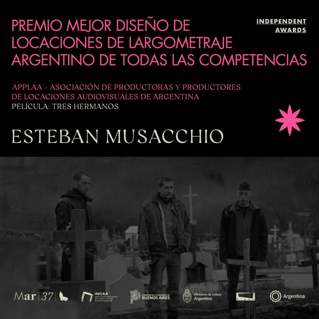 “Muy contento de recibir un premio en el festival de cine de Mar del Plata por el trabajo que venimos haciendo desde Matuasto Films junto con Caro Carizza en la Patagonia. Muchísimas gracias a todo el equipo de la película 3 Hermanos por confiar en nosotros, Francisco, Paula, Palmer, Ecasty, y todas las personas con las que compartimos el rodaje. Muchas gracias también a APPLAA por el premio!”, publicó Musacchio en sus redes sociales.