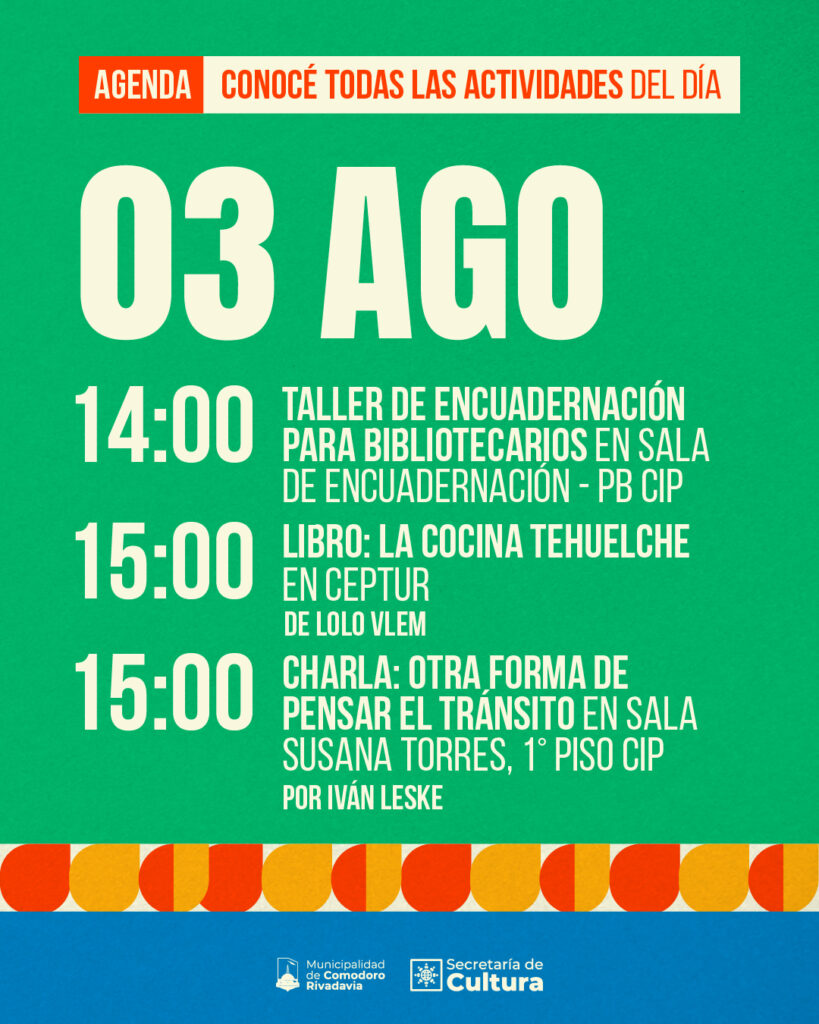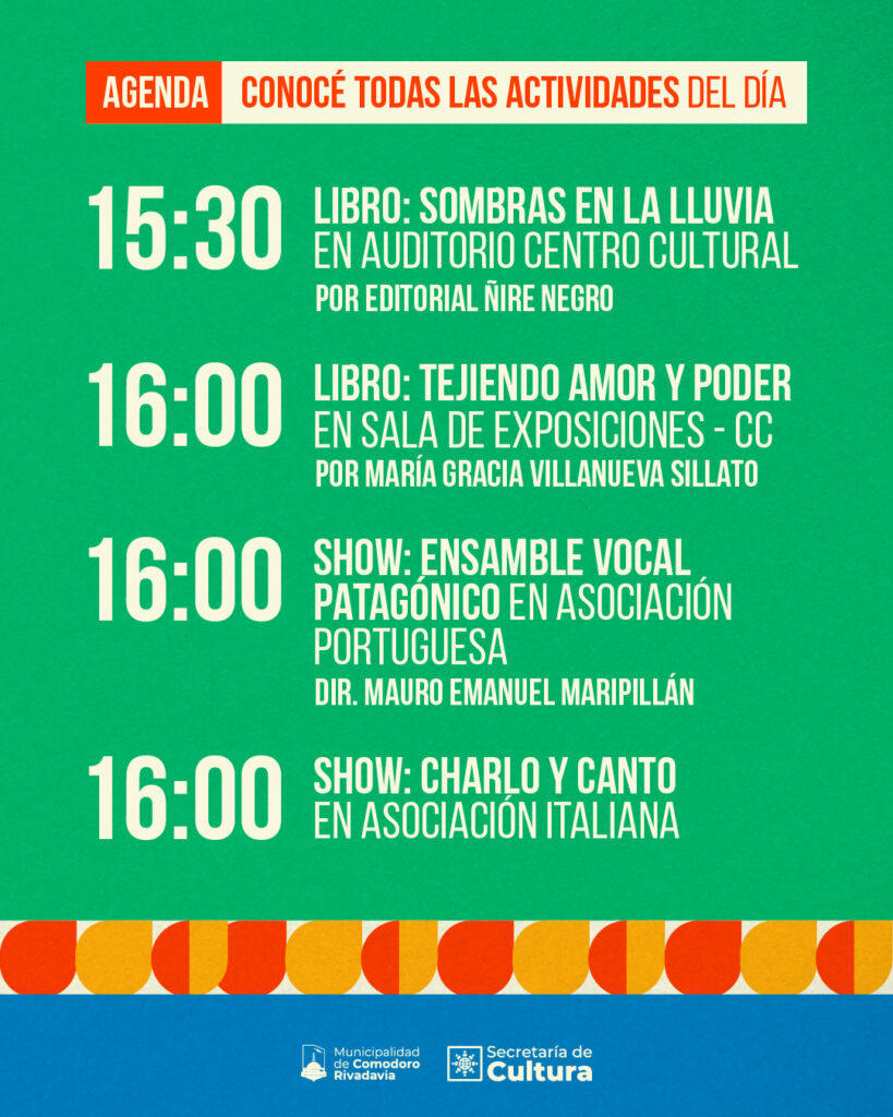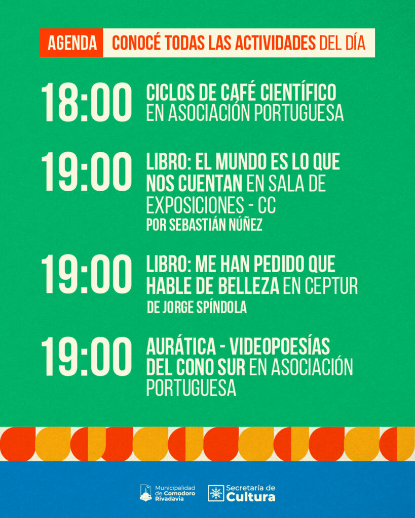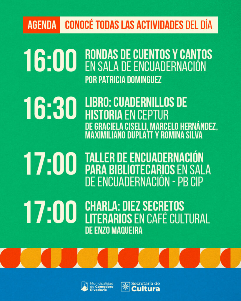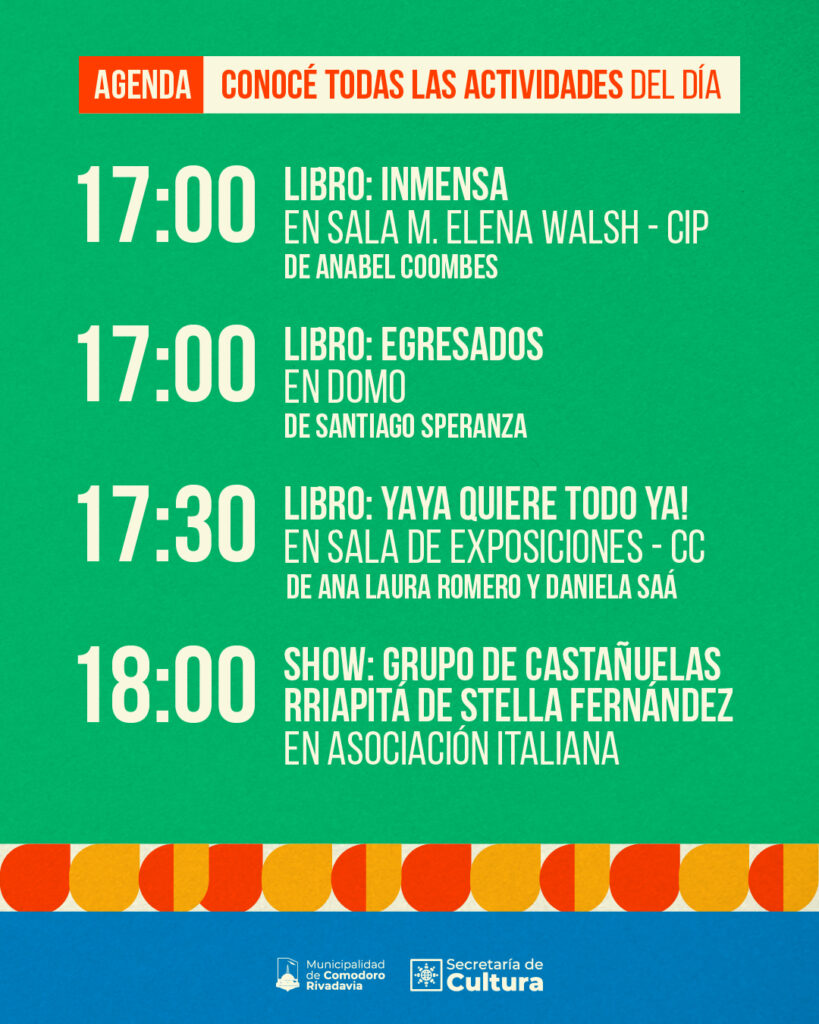 Este domingo, la actividad arranca a las 14:00. Se espera una jornada cargada de libros, charlas, emociones y encuentros imperdibles en distintas sedes, hasta cerca de la medianoche. En el canal de YouTube de @culturacomodoro hay transmisión en vivo.