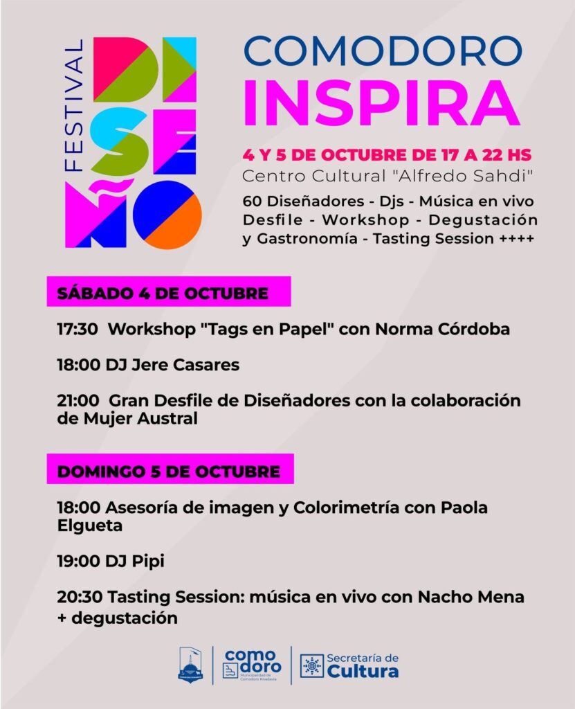 Este sábado y domingo, de 17:00 a 22:00 en el Centro Cultural, tendrá lugar el Festival de Diseño “Comodoro Inspira”, integrado por las marcas inscriptas en el Registro Oficial de Diseñadores de la Secretaría de Cultura.